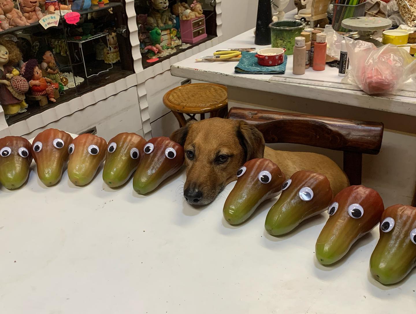 而其實平常東古就很喜歡把頭饋在桌子上,而飼主身為「小婦人工作室-紙粘土教學/訂做/材料專賣」的店長也沒有錯過這個機會,時常會請東古擔任自己作品的模特兒,逆來順受的牠也因此在網路上小有名氣呢!