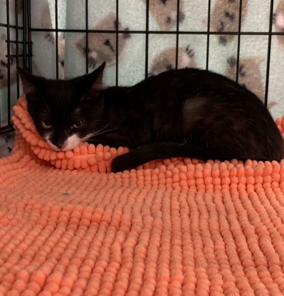 ▼志願者Brittany說:「其他小貓都很活潑,只有Amelia躲在角落。我們本想給牠準備一個紙盒,讓牠躲在裡面,這樣也許會感覺舒服一些。」