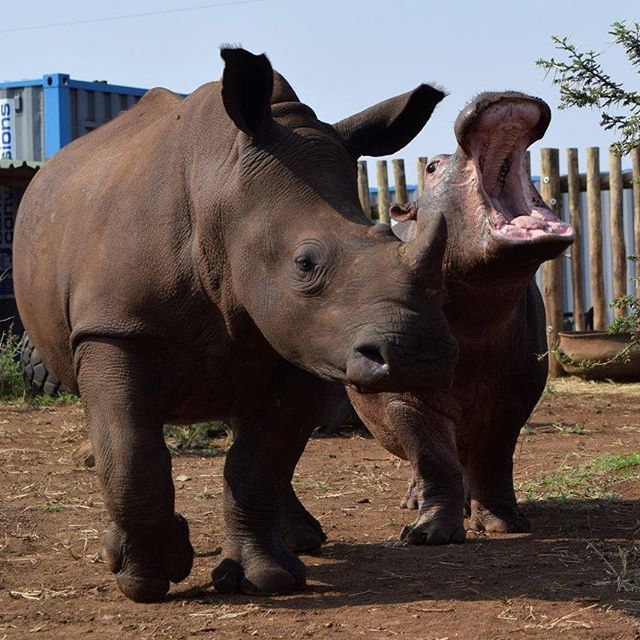 老實說,就體色和身型來看、不要看臉的話,乍看真會忽然分不清楚河馬和犀牛,其實就連牠們自己也是...在南非祖魯蘭有個「犀牛育幼院」(Zululand Rhino Orphanage),主要收容那些失去媽媽的小犀牛,當中也有少數一些其他動物,像是今天的主角——河馬查理(Charlie,♂)就是其中之一,因為從小和犀牛一起長大,讓牠完全沒意識到自己是河馬...