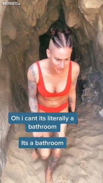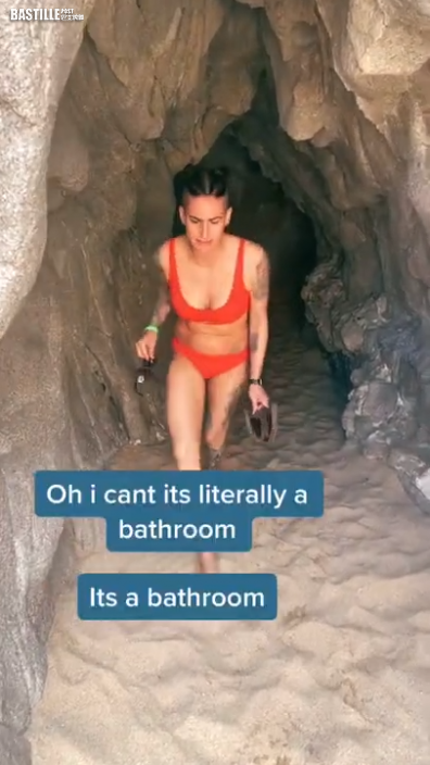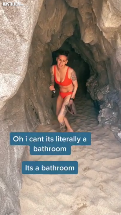 日前,有一位名叫Jessica Clark的美國女子在TikTok發文分享自己的過往經驗,她表示自己早前和友人一同前往墨西哥度假,期間到海邊遊玩,意外發現一處神秘的洞穴,生性大膽又充滿好奇心的她決定入內探險,不過當她越往裡走就發現氣味不太尋常,終於意識到這個洞穴的真正用途,其實是廁所,連忙以一臉嫌棄的表情轉身逃離。