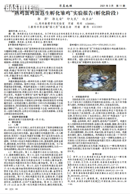 這篇題為《熟雞蛋變成生雞蛋(雞蛋返生)-孵化雛雞的實驗報告》的論文,去年由鄭州春霖職業培訓學校校長郭平發表於《寫真地理》期刊。論文介紹,10名特訓班學生將新鮮雞蛋完全煮熟後,開始用超心理意識能量方法,20分鐘後雞蛋返生成功,甚至有一枚雞蛋當場破殼。