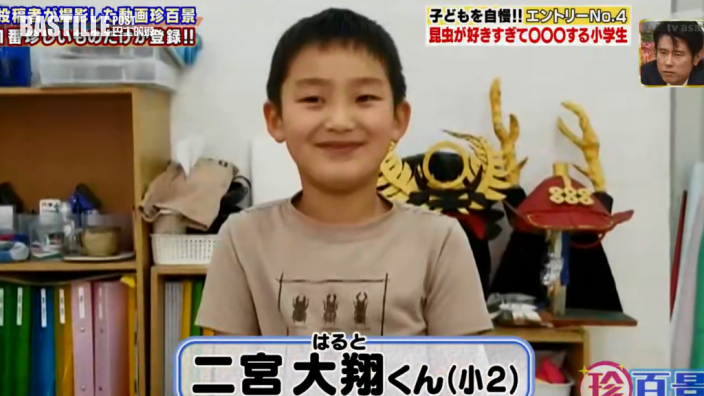 正就讀小學二年級的二宮大翔是位昆蟲愛好者,一直有收集很多不同種類的昆蟲,還會親自試食,只為完成自己的研究,紀錄不同昆蟲的味道。他日前便在電視節目《ナニコレ珍百景》中,示範進食昆蟲及介紹味道。
