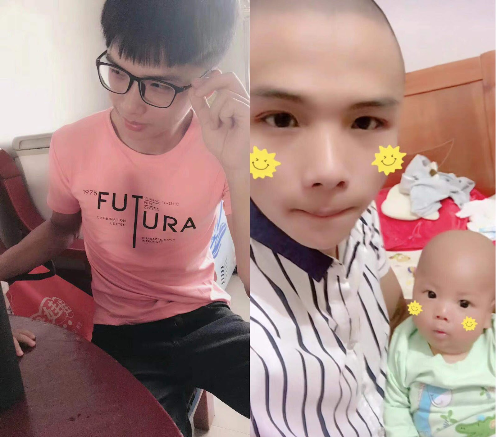 雖然剃了光頭,但庄光輝依舊帥氣,各種表白依舊接連不斷,英子感動於老公的良苦用心,對於老公被表白也就不再計較。如今,庄光輝為了給妻兒創造更好的生活,在當地一家外賣公司跑業務,雖然薪水不高,但兩個人同心同力,他們相信只要心在一起,日子一定會越過越好。(圖左為庄光輝剃光頭後頭髮長長,圖右為夫妻倆的兒子)