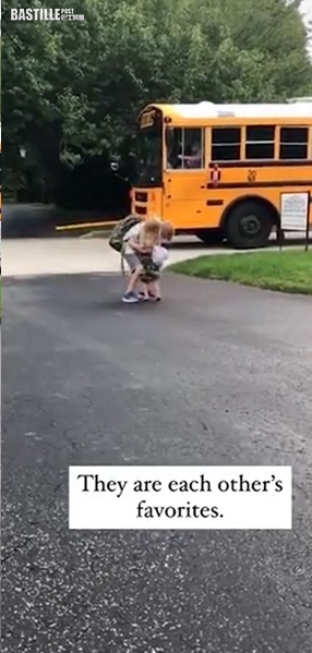 父母最開心是看到孩子們相親相愛。美國一名5歲女童Arbor日日等哥哥放學,當校巴到達後,Arbor就會好興奮跑上前,兩兄妹會肉緊抱着對方。