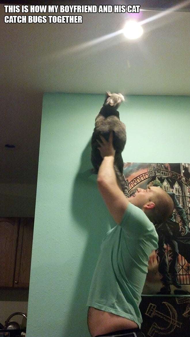 14. 我的男友跟他的貓貓就是這樣抓蟲子的