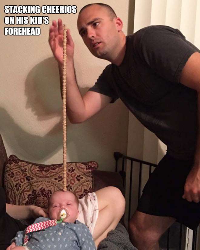 11. 在小寶寶的額頭上,大疊小餅乾(媽媽不阻止嗎?)