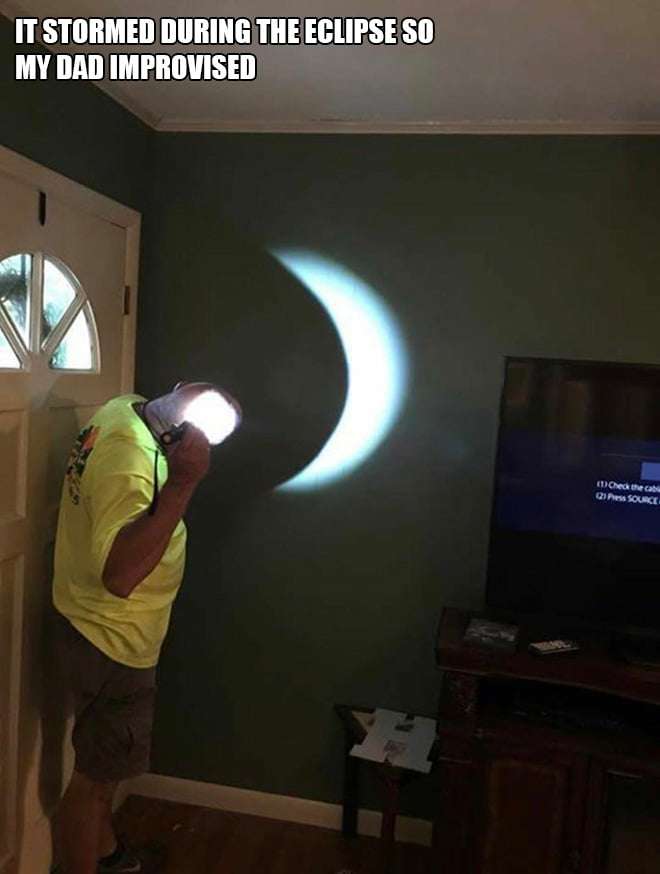 2. 發生日食的時候,外頭突然下著大雨,因此...老爸就直接用頭模擬。