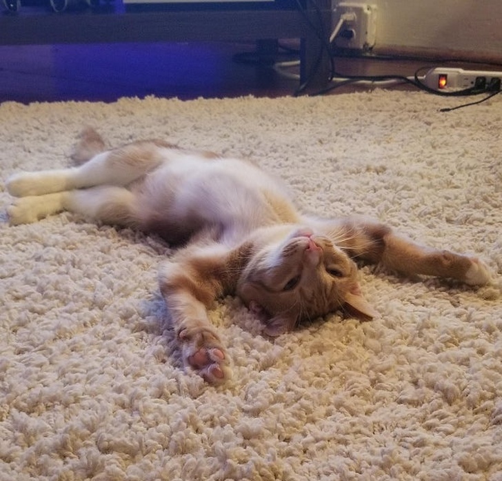 ▼「牠已經這樣躺著30分鐘了…是沒看過地毯嗎?」