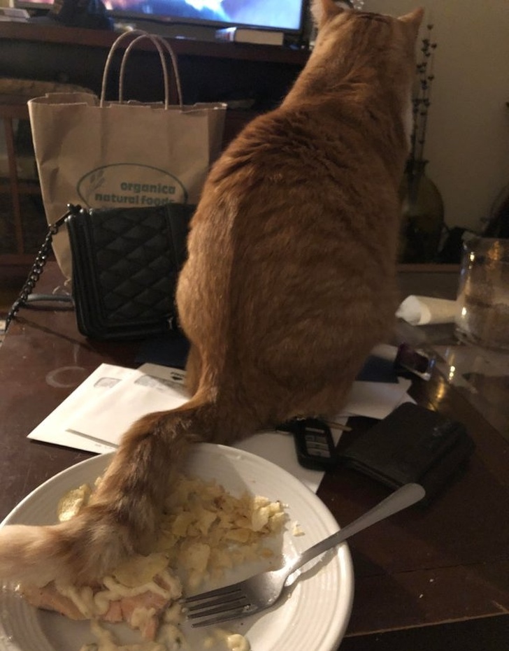 ▼鏟屎官:「才一轉身,主子就幫我加菜了…」
