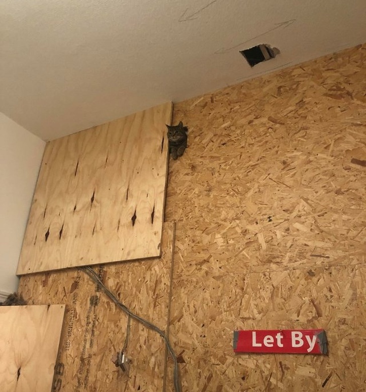 ▼才剛聽到牆上有聲音,一抬頭就看到這畫面…