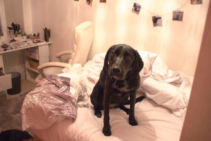 ▼當你帶牠出去散步時遇到下大雨,一回到家直接擺脫牽繩直奔到你床上╰(〒皿〒)╯