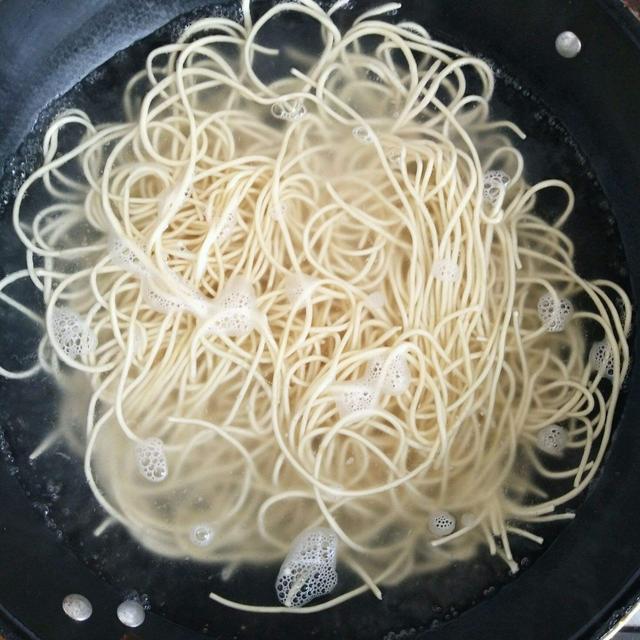 (5)鍋內水燒熱,下麵條;