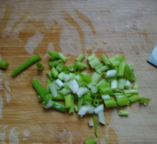 (2)熱鍋倒油,放入切好的綠蔥段;