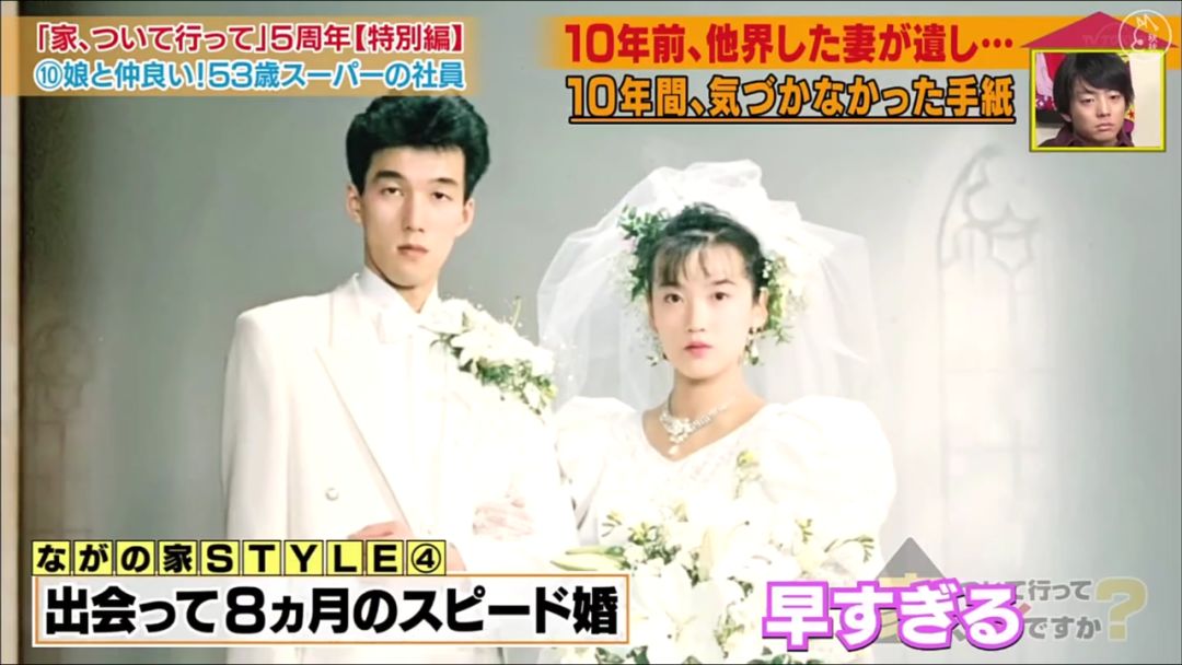 栄一和香相遇於一位前輩的婚禮儀式上,當時二人坐在前後位上,栄一迅速被可愛的香所吸引,相識8個月後,兩人便閃電結婚了,婚後二人生育了2男1女。
