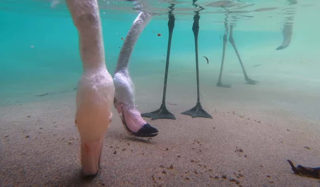倒頭栽吃飯法!罕見「紅鶴覓食」曝光 網熱議:看得脖子好痠~