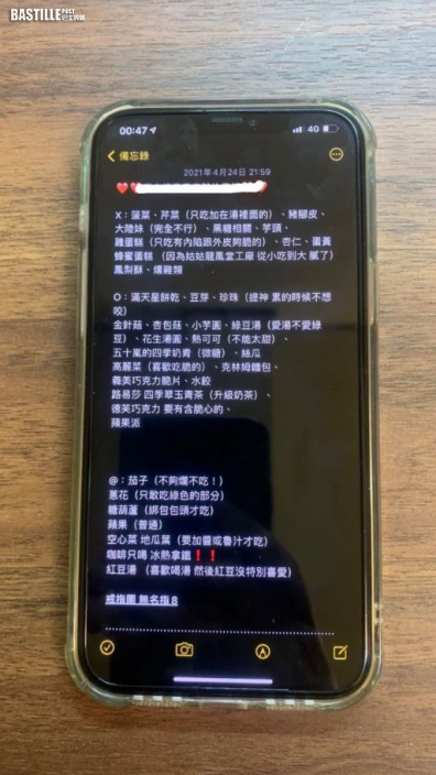 男友在手機備忘錄中記下女友的食物偏好。(網上圖片)