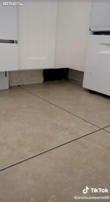 這名TikTok網民Angelica在其個人帳戶「anxiousweenie69」分享短片,表示早前與男友領養了一隻新小貓,但小貓回到家後卻常不見蹤影,她們多次查找後,才發現牠躲藏在廚房一個窄小的小洞中。「我們找過了沙發,背後,但到處都找不到牠,到最後我們進入廚房,才看到牠瑟縮在角落一個小洞裡。」
