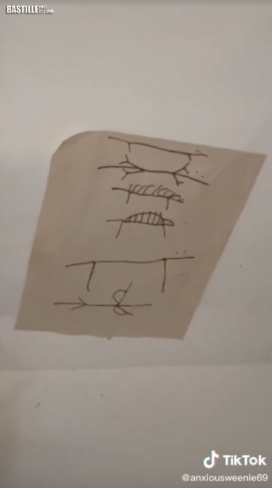 有TikTok網民日前分享短片,表示她的小貓常在家中不見蹤影,她和男友經過多番查找後,才發現牠躲藏在廚房一個窄小的小洞中。而她將相機放進洞中,更發現洞內貼了一張手繪風格的符號,直言嚇得毛骨悚然。