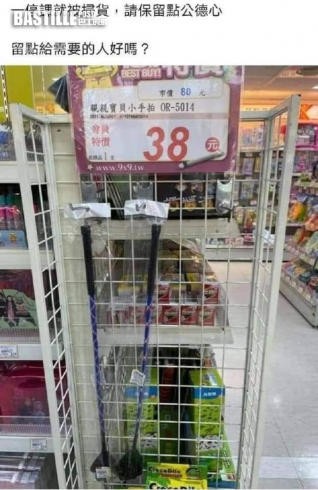 台灣新冠疫情持續爆發,各地中小學校均採取停課措施,學生們都要留在家中改以線上方式上堂,不少家長則嚴陣以待。最近有家長外出購物時,發現某商店貨架上的一款「育兒神器」竟被掃貨,僅剩下2支,連忙拍照分享到網上驚呼「留點給需要的人好嗎?」。
