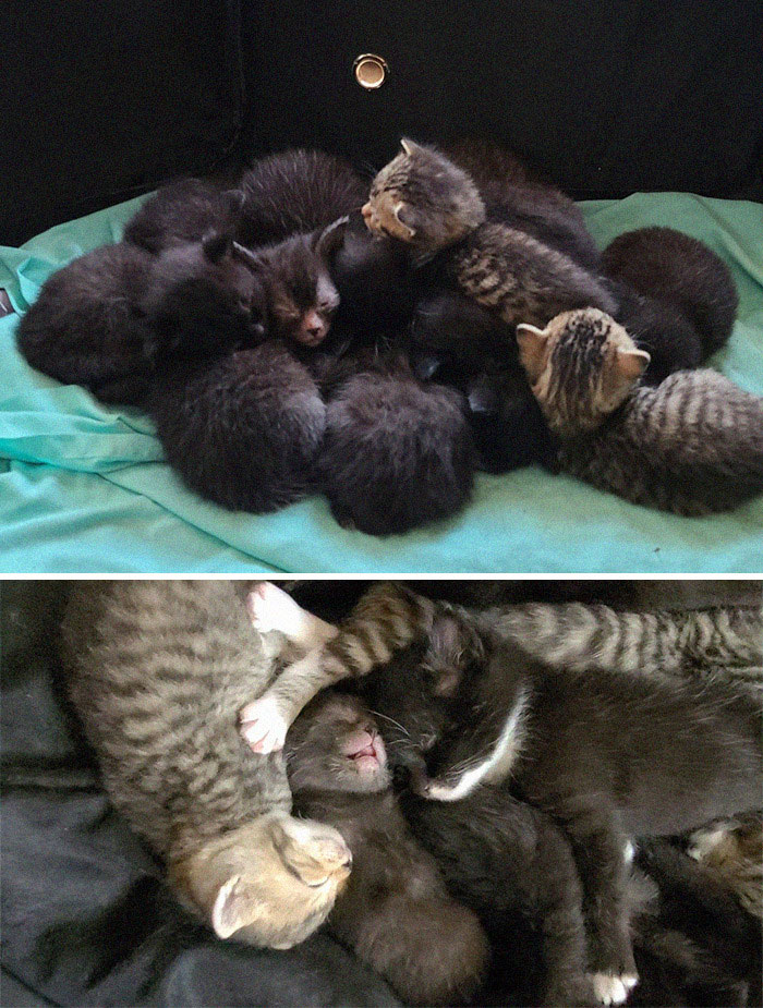 布莉安娜表示,因為2隻貓媽媽在生產前感情就相當要好,後來牠們差不多相隔一週各自產下6隻小貓,也把對方的孩子視如己出,2個貓媽媽就共同一起照顧12個寶寶,讓小貓們都能夠獲得完善且全天候的呵護,不過布莉安娜卻仍發現其中這隻名叫葛蕾西(Gracie)的小貓特別虛弱,明明兩個貓媽媽同樣呵護牠,牠還是不斷脫毛、和其他兄弟姊妹都不一樣...