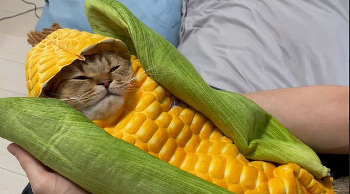 2021年05月11日這根玉米看起來很吸引人!日本有一隻網紅貓咪Minira,牠長相可愛,很有個性,主人還會為牠準備各種各樣的有趣道具,早早就在網路上引發關注,成為了寵物網紅。最近主人為Minira準備了一組玉米造型的毛毯,Minira被包在玉米裡的樣子很可愛,讓人的心都要融化了。