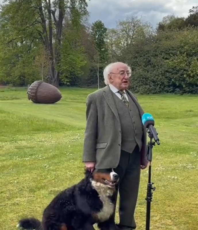 愛爾蘭總統致詞被騷擾!「超萌歹徒」狂蹭求摸 他淡定一手擼狗網笑翻