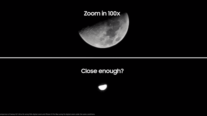 Samsung 近日推出新廣告調侃 Apple iPhone 12 Pro Max,不但在片頭寫下「你的新手機應該要升級,而不是降級」(Your phone Upgrade, Shouldn’t be a downgrade)的標語,更分別推出 3 部不同的影片指出 Galaxy S21 Ultra 3 項比 iPhone 12 Pro Max 優勝的功能,包括拍攝功能、相機像素以及附加功能。