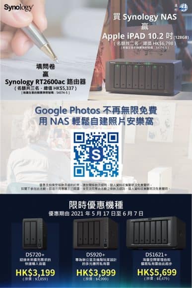 不少人都希望電腦擁有更多的空間,可以存放更多的照片。而Google Photos 即將終止無限免費儲存空間,不如就着今次機會考慮自己建立私有雲端。近日只要填寫問卷就有機會抽中 Synology Router,而購買 Synology NAS 更有機會抽中 iPad。