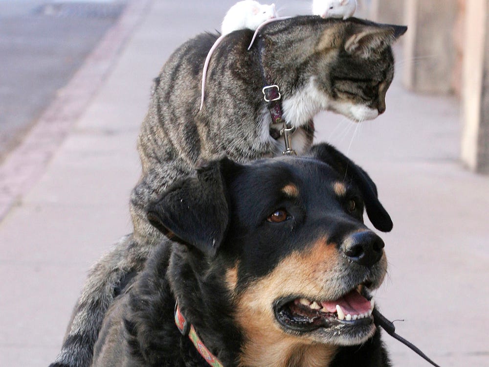 ▼狗狗、貓咪、老鼠,這是什麼奇妙的組合?