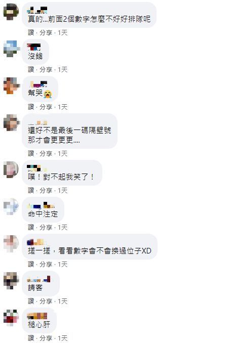 差之毫釐、失之千里的窘境,讓女子在貼文中留下3個「氣噗噗」的表情貼圖,而網友也紛紛留言哀悼「前面2個數字怎麼不好好排隊呢」、「搓一搓,看看數字會不會換過位子」、「這個才是真正的搥心肝」、「比沒中半個字還要氣」。