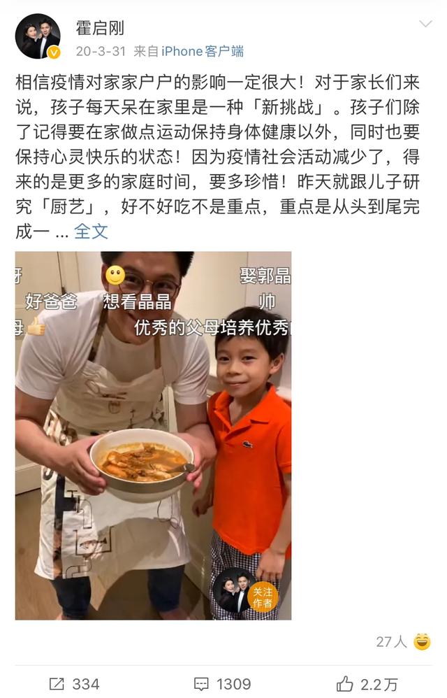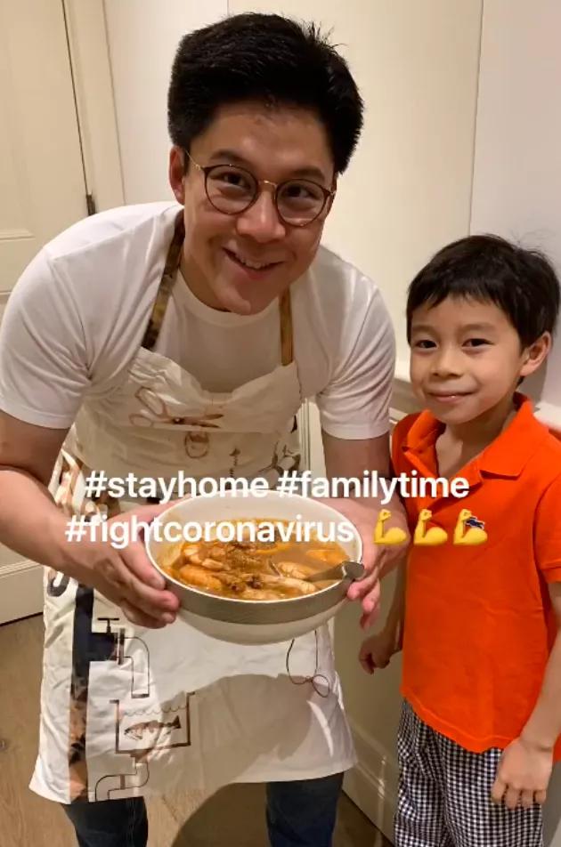 今年5月母親節,霍啟剛帶著三個孩子一起做蛋糕,給媽媽一個小驚喜。