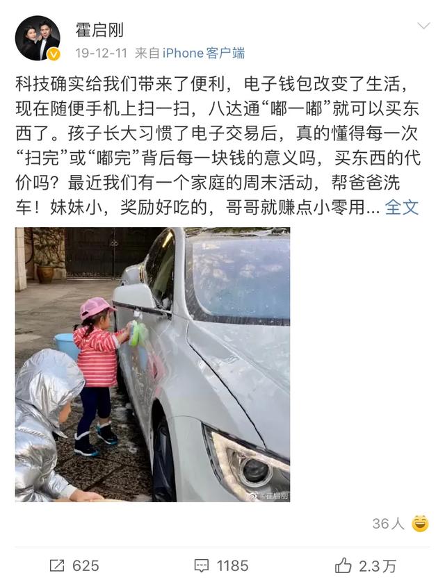 比如,霍啟剛分享過的「給爸爸洗車活動」。