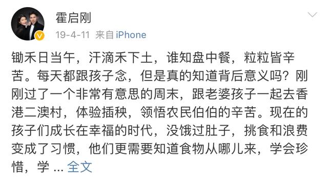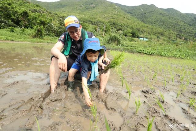 霍啟剛曾在微博,曬出帶孩子下田插秧的照片。