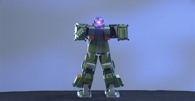 據古谷先生表示,一開始他嘗試用歌曲和歌詞來激活大腦,當渣古機械人開始移動後他想到走路、射擊等動作。如照片所示,當古谷先生集中精神時渣古立刻反應過來,並開始走路和向前揮拳。