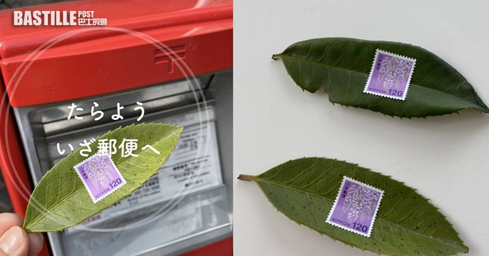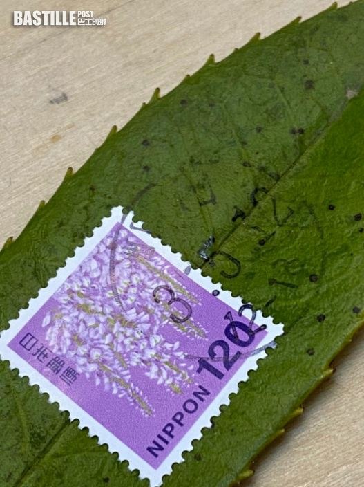 日前,大學教授Hajime Ishikawa (@hajimebs)在Twitter賬號上上載了幾張照片,展示了一片綠色樹葉,只見葉子其中一面貼有面值120円(約8.5港元)的郵票,上面蓋上郵局印戳,背面還有黑色筆寫上的郵寄地址。