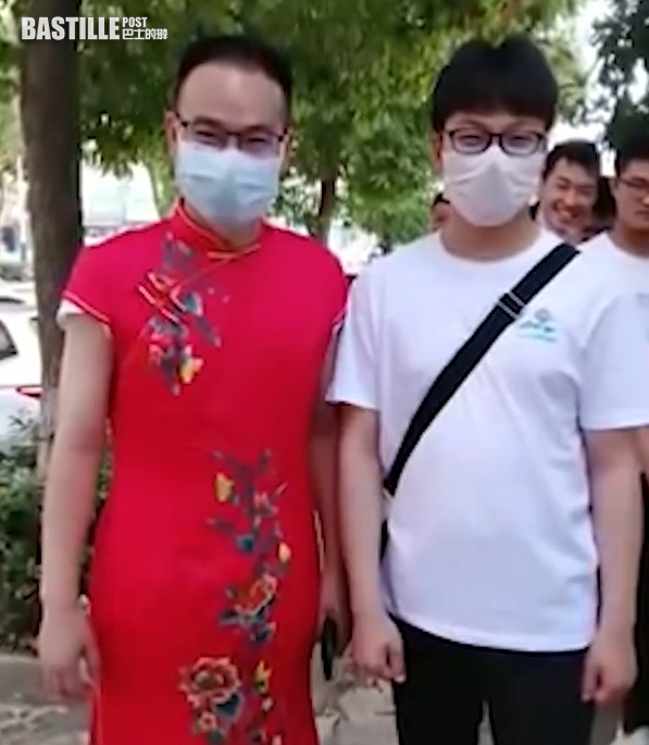 剛剛結束的內地高考每年都能在網上掀起話題熱度。今年,一段江蘇淮安某高中一名男老師身著紅色旗袍現身考場為學生們祈福加油的影片在網上瘋傳。該名男老師指在高考前幾天學生們向他表示要穿旗袍代表「旗開得勝」,他回應道「你們敢買我就敢穿」,沒料到學生們真的買了一件。男老師表示「學生們買都買了,雖然有點不好意思,但和他們約定的一定要兌現」,於是信守承諾穿上了旗袍。