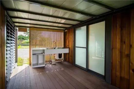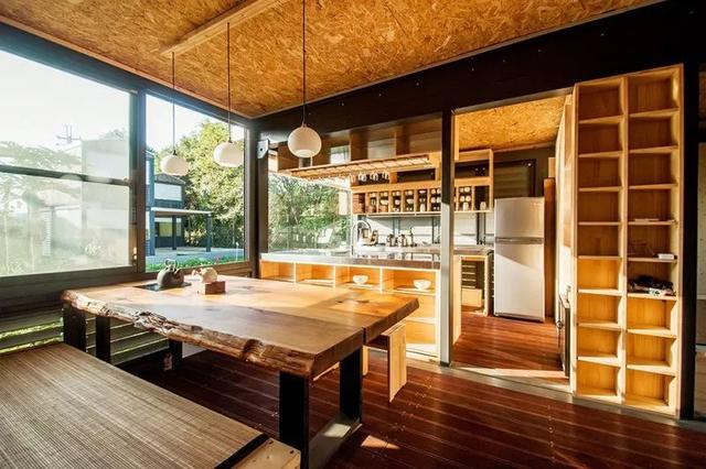 比如屋頂是塑鋁板,外牆是檜木,而且全都置入發泡隔熱材料,還預留空氣層設計,既能夏天隔熱,也能冬天保暖。
