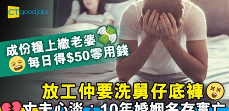 坊間有不少丈夫都會將人工上繳老婆,再由老婆分配零用錢作日常使費。最近有人夫在網上抱怨10年來每日只得$50零用錢,放工返屋企做齊家務,連舅仔的內衣褲都 ...