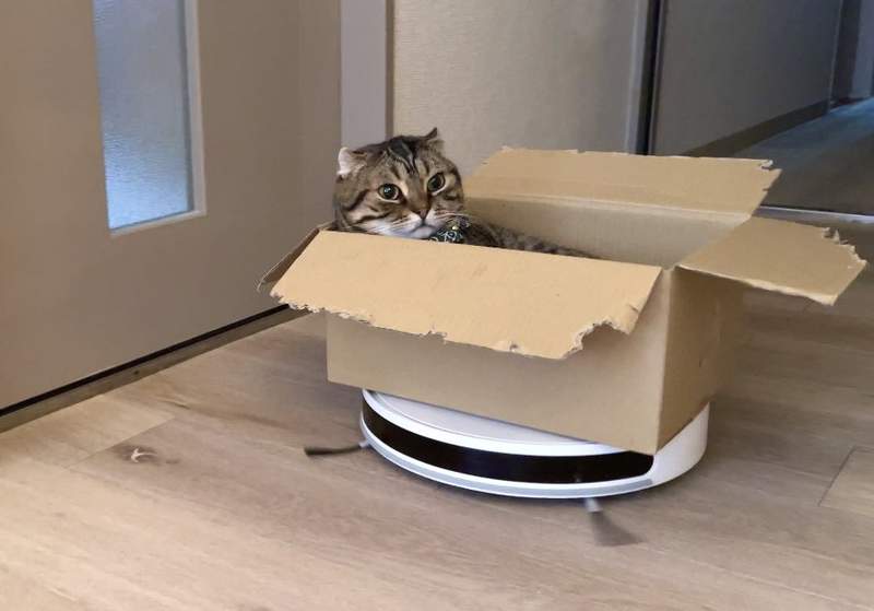 有新坐騎!主子爽搭「掃地機器人」巡視領土 下秒竟「意外車禍」網笑翻:想一直重播~