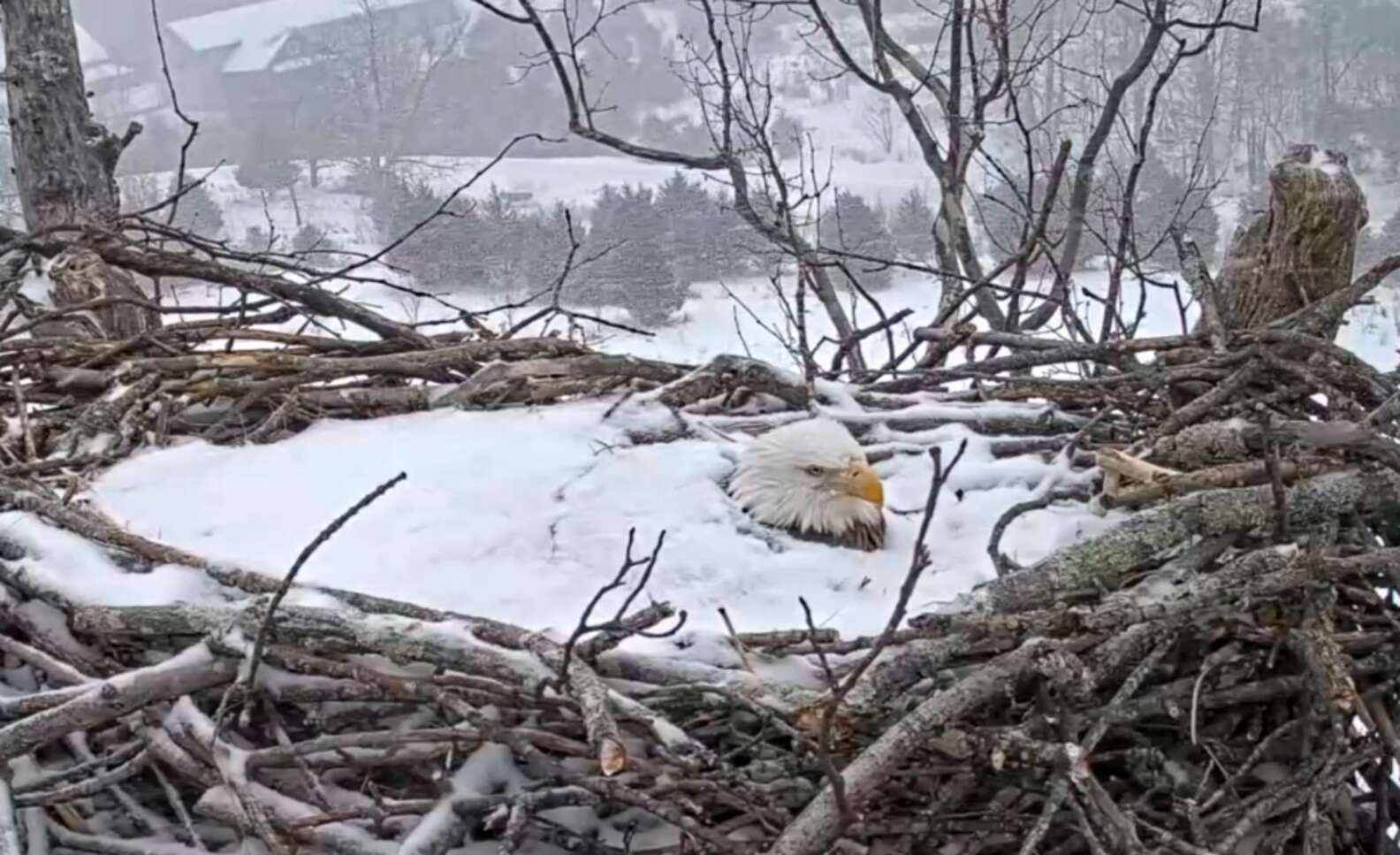 老鷹雪地「只露一顆頭」是在洗澡? 起身後網友解惑:好認真負責