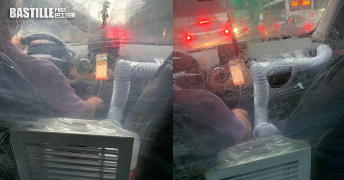 的士佬為防疫前後座間封膠紙加軟管通冷氣 遭笑:似移動ICU