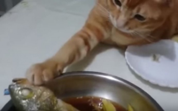 貪吃橘喵上桌伸出「鹹貓手」主人阻止牠依舊頑強:不能吃摸摸也好