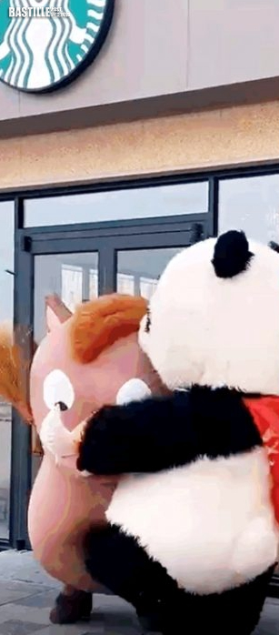 江蘇街頭上演「熊貓」大戰「野豬」 場面激烈勁搞笑