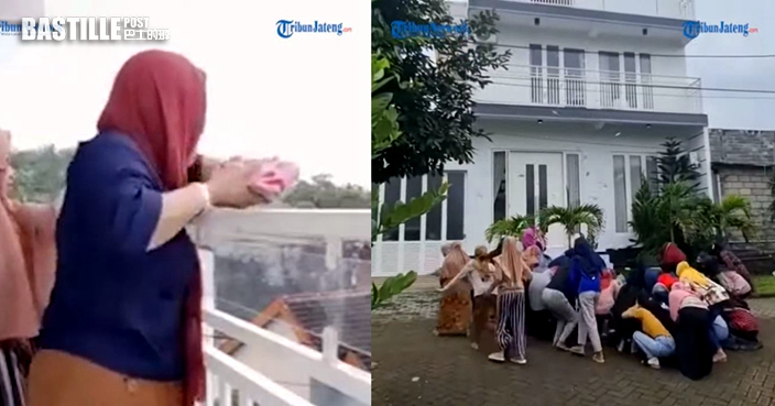 印尼婦露台上派錢落街引人瘋搶 原來係公司新式「分紅」