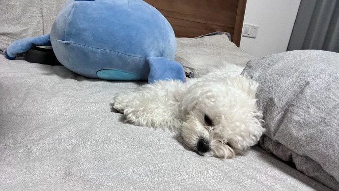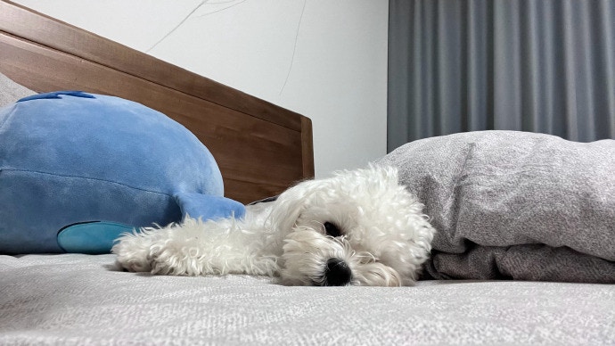 網友「Jeon-B」日前在微博分享,愛犬「燒賣」是魔天使(馬爾濟斯)和比熊混血的調皮汪星人,每天待在家裡卻有一個奇怪癖好,那就是拖著自己的貼身衣物到處亂跑。