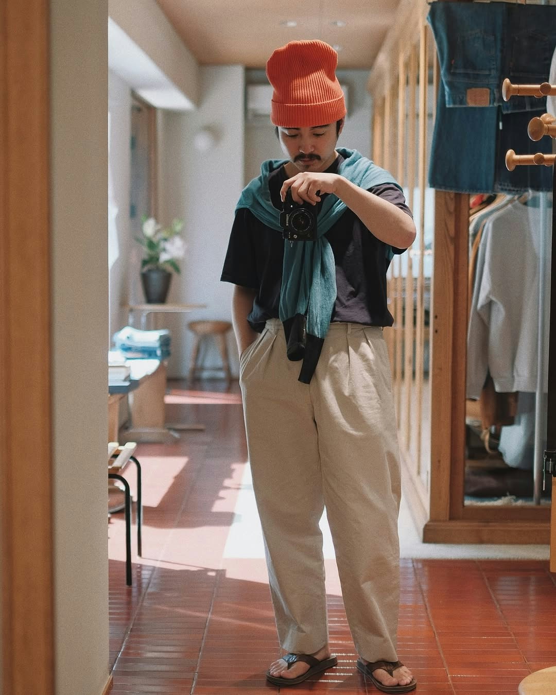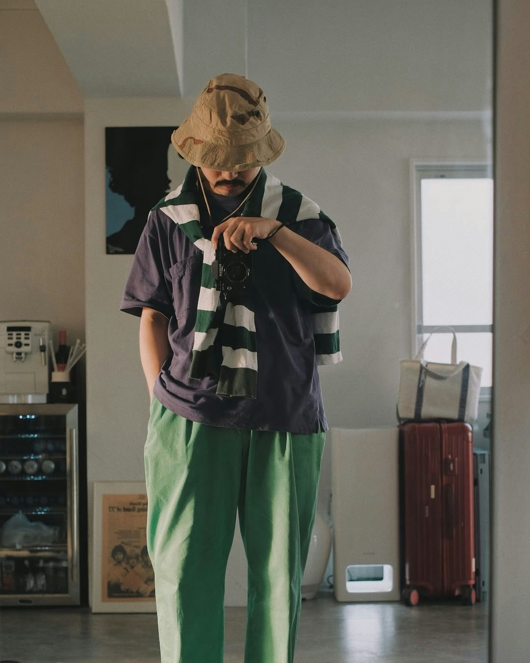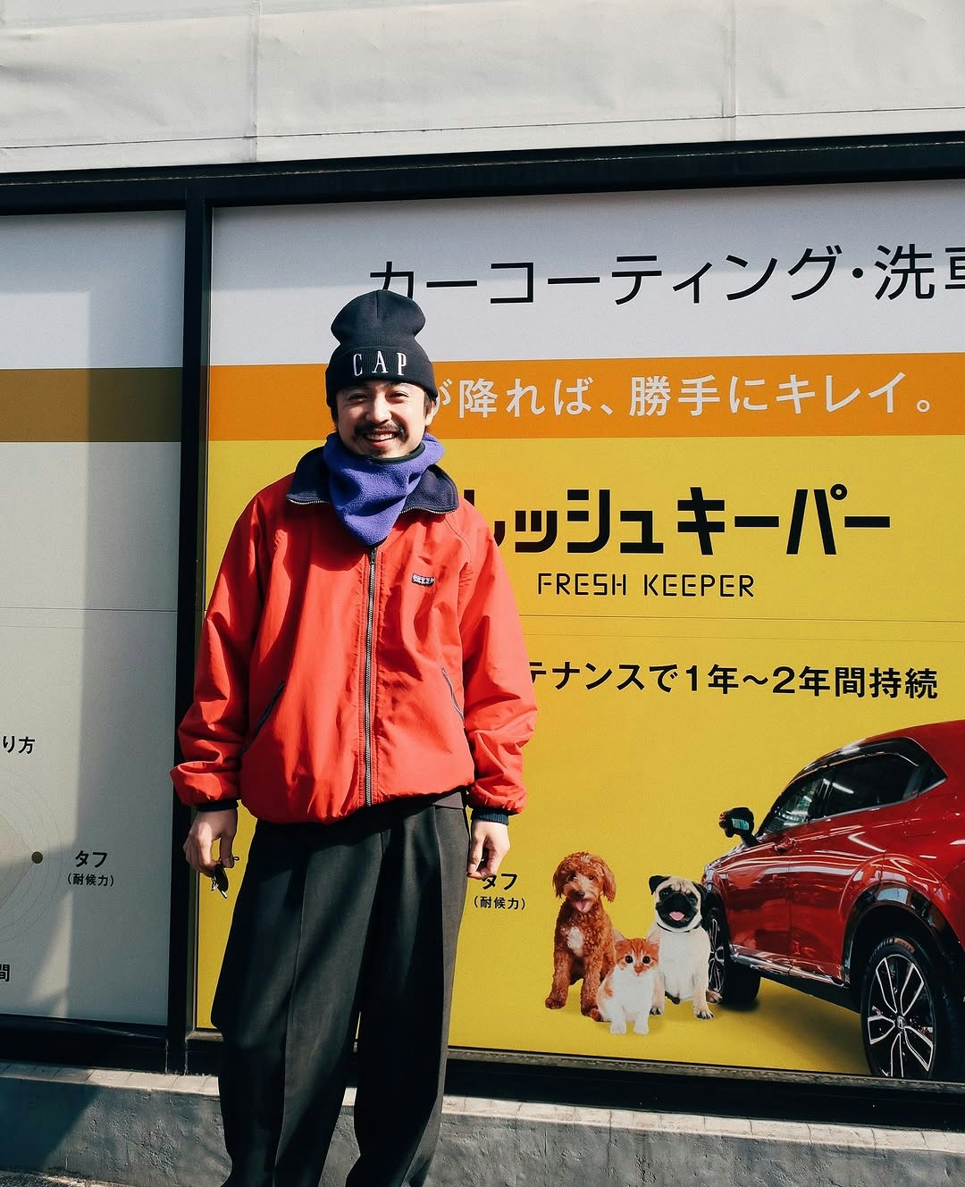 於2024年6月才正式誕生的ByeA.,由石黑晴輝所主理,在還未跳出來自立門戶之前,他曾跟隨金子惠治作為L'ECHOPPE助理買手,所以環觀他個人IG帳號的日常自拍照,亦發現其造型上散發不少金子惠治好友NEAT主理人西野大士的多元化拼搭風,同時自石黑晴輝建立ByeA.後,經常配襯品牌標誌惡搞GAP的「CAP」帽子與冷帽示人,身體力行地推廣個人品牌。