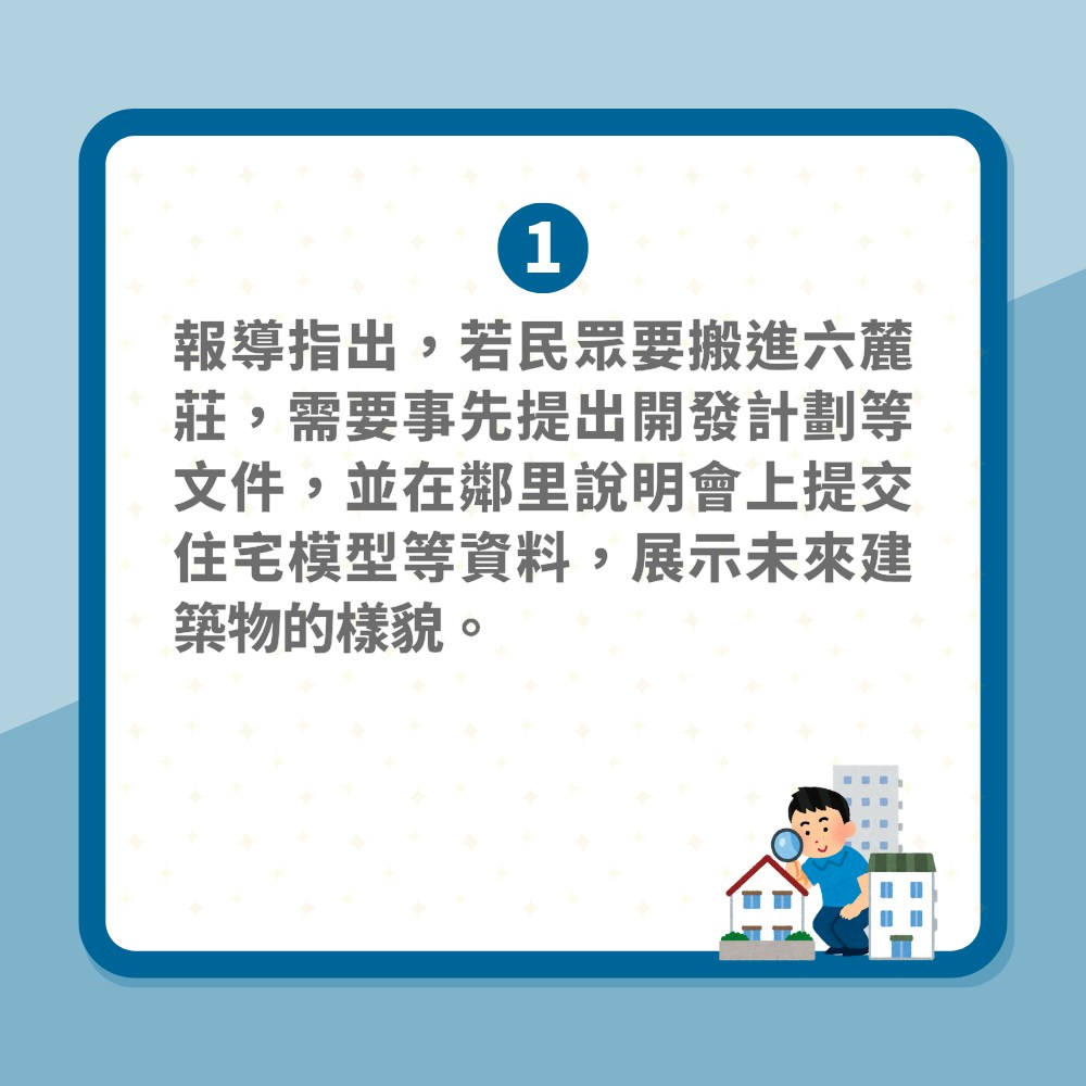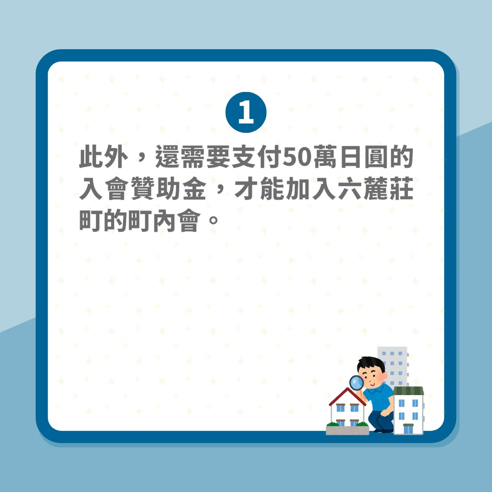 報導指出,若民眾要搬進六麓莊,需要事先提出開發計劃等文件,並在鄰里說明會上提交住宅模型等資料,展示未來建築物的樣貌。此外,還需要支付50萬日圓的入會贊助金,才能加入六麓莊町的町內會。