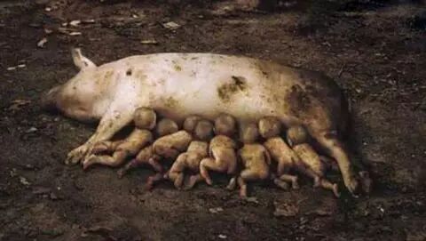 震驚!一隻母豬居然生下8個男嬰兒!
