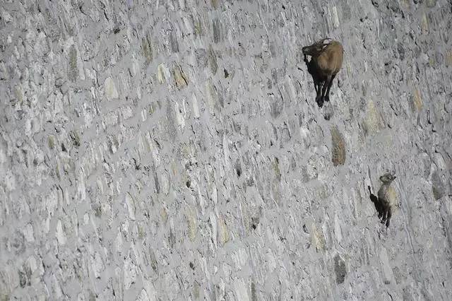 據美國國家地理雜誌網站報道,每到夏天,一群野山羊就在義大利北部的希吉諾水壩岩面上攀爬的驚險瞬間。野山羊之所以冒險攀爬水壩並不是為了展示它們的過人本領,而是為了舔舐岩石上面的鹽。作為一種食草動物,它們無法獲取足夠的礦物質。
