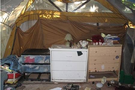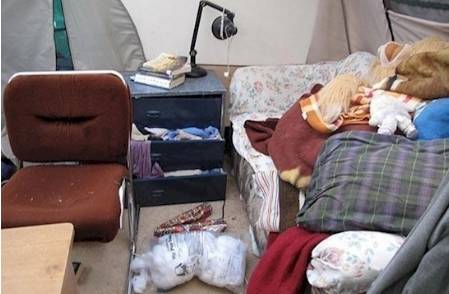她被囚禁在一個殘破不堪的房子的後院裡,沒有一個房子供自己居住,Jaycee就這樣睡在雜亂五章的帳篷里,帶著手銬,不能動彈。